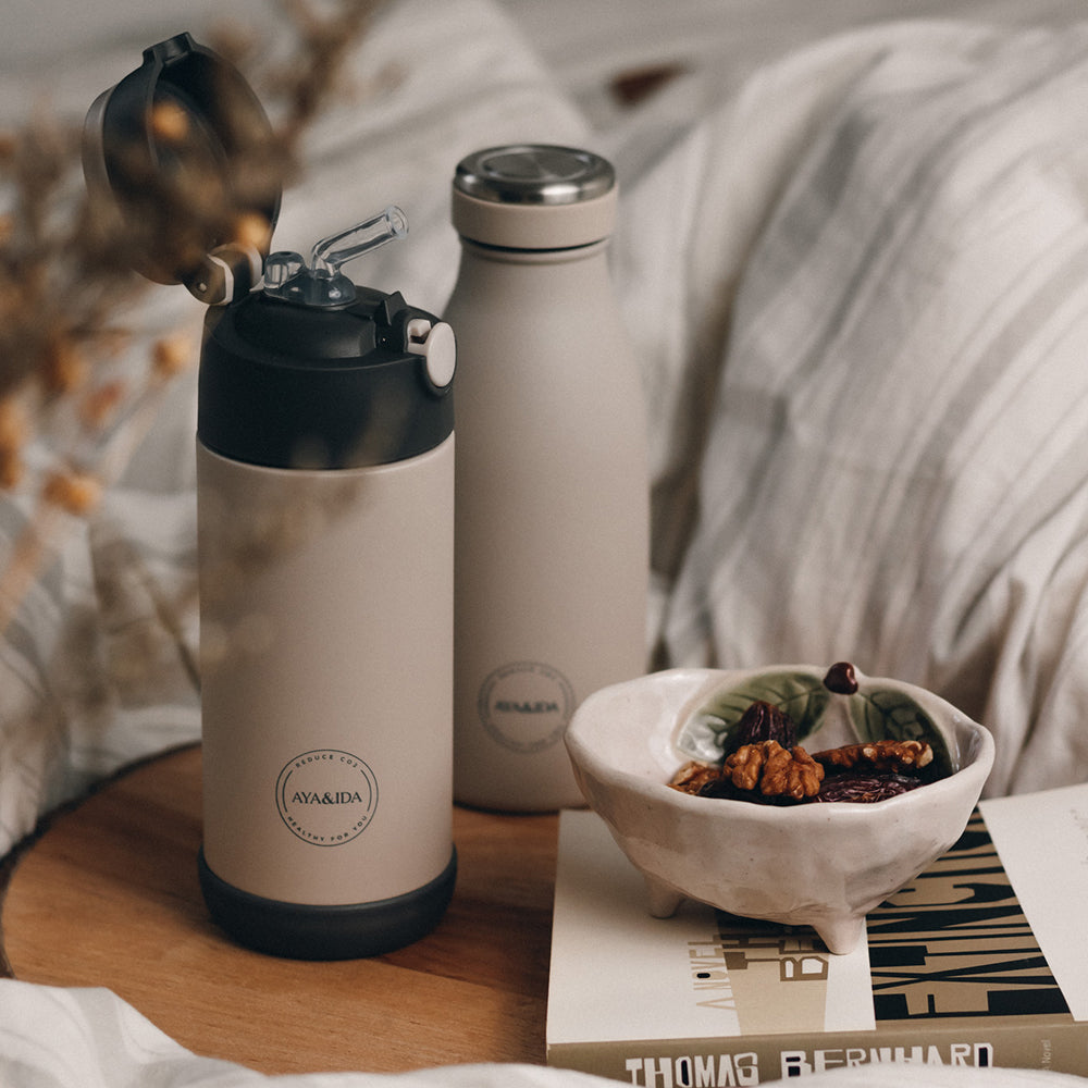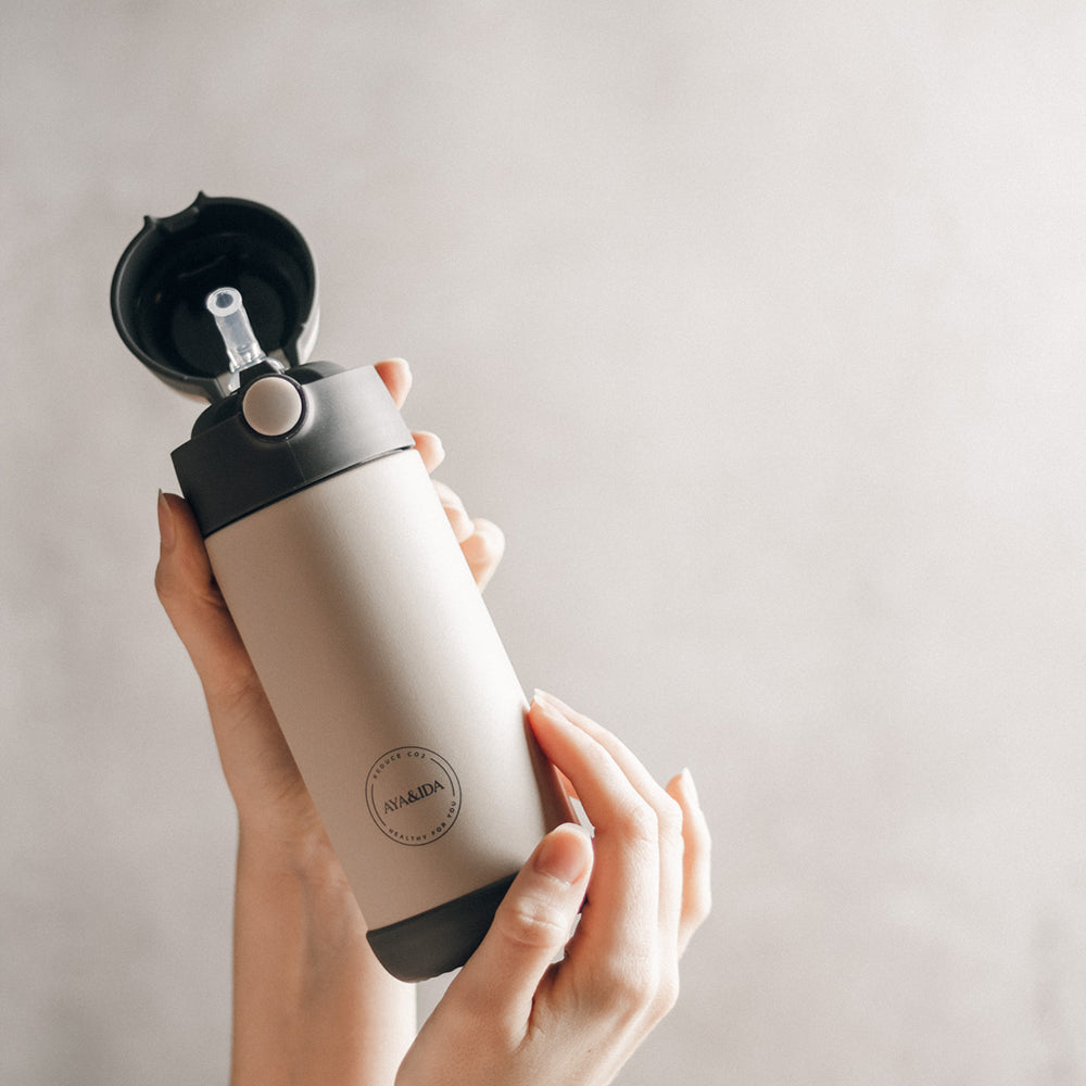 Aya & Ida Kids Straw Bottle – Drikkeflaske til børn i Cream Beige