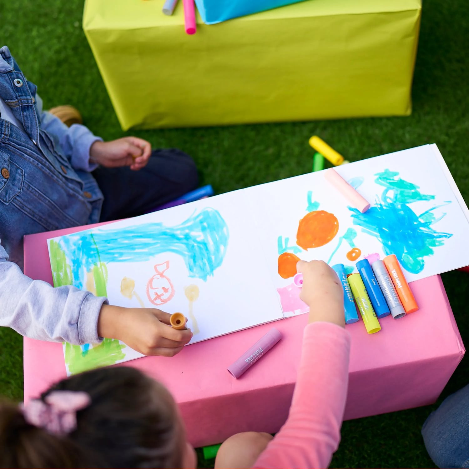 Chunkies Metallic Paint Sticks er plakatmaling i en praktisk, fast stiftform. Det betyder en utrolig glat tegneoplevelse, der tørrer hurtigt og ikke smitter af – perfekt til små, utålmodige hænder. Glem alt om pensler, vand og spildt maling; disse stifter er klar til brug med det samme. Deres tykke design gør dem nemme at holde og kontrollere, selv for de mindste kunstnere.