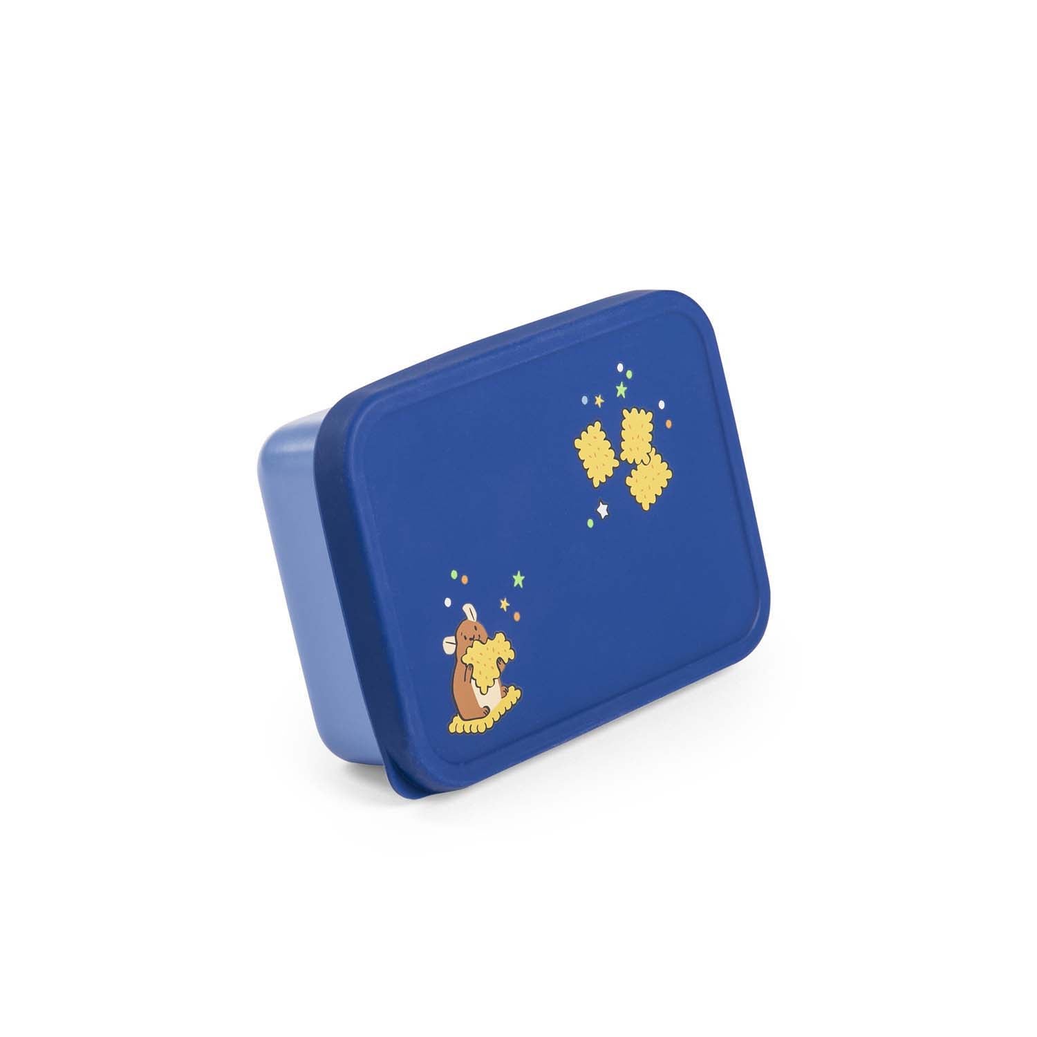 Praktisk madkasse i rustfrit stål med silikonelåg i flot blå, dekoreret med figurerne Puce & Pilou. Låget slutter helt tæt, så indholdet holdes friskt og sikkert under transport. Perfekt til børns hverdag, om end det er til skole, tur eller udflugt.