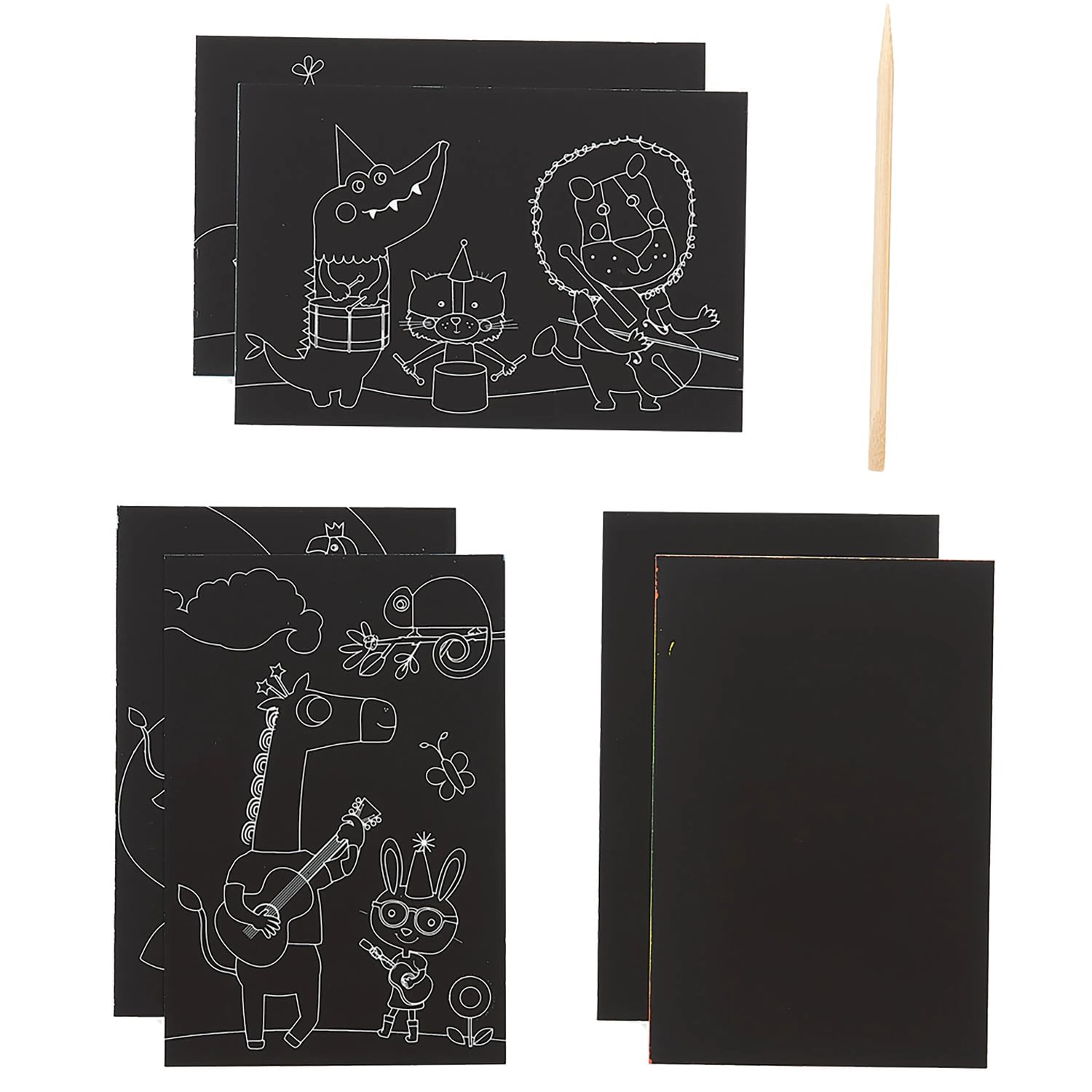 4 illustrerede skrabekort (10 x 15 cm): Med fortryllende safariscener, der venter på at blive afsløret.