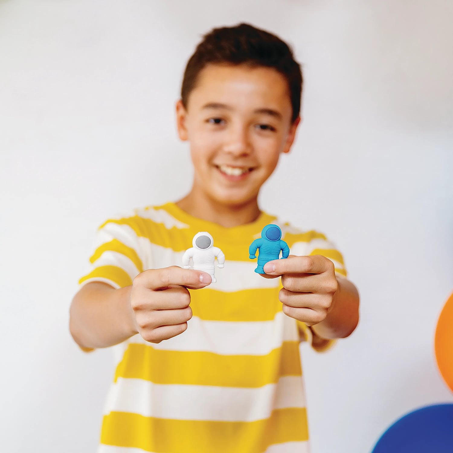 De farverige viskelædere er formet som små astronauter og passer perfekt til børnehænder – både når der skal viskes ud, og når der skal leges. Sættet indeholder tre viskelædere i grøn, blå og hvid, som gør det let at rette blyantstreger og samtidig inspirerer til fantasifuld leg.